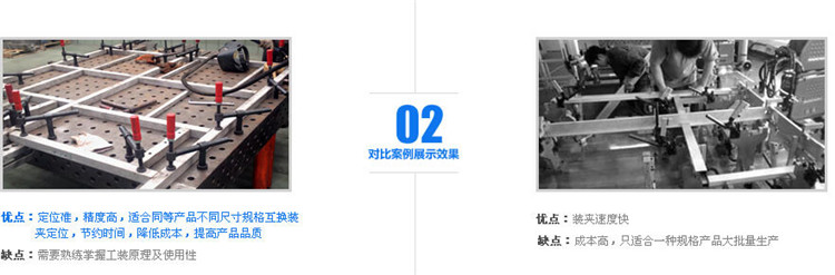 拼装方式多样,用户只要充分发挥想象力,几乎可达到任何专用夹具同样的定位和夹紧功能。拼装快速,装拆方便;工作台面可以根据工件形状、大小进行拼装组合。台面上的刻度和??槌叽绲纳杓?,使操作工人不用量具就可以根据工件尺寸迅速搭出所需要的工装。